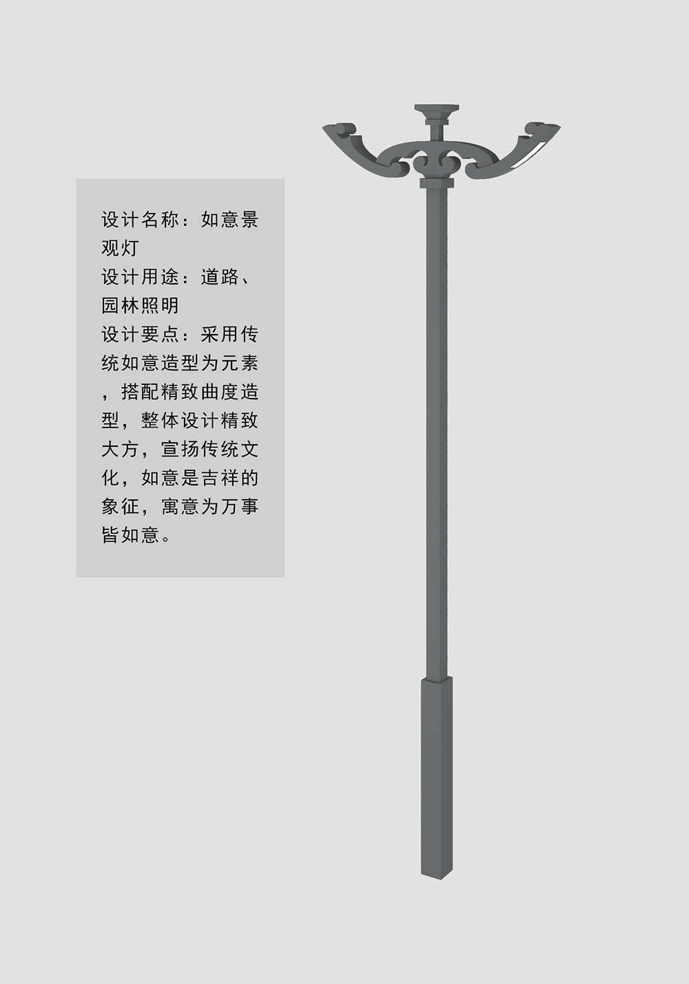 設(shè)計要點:采用傳統(tǒng)如意造型為元素,搭配精致曲度造型,整體設(shè)計精致大方,宣揚傳統(tǒng)文化,如意是吉祥的象征,寓意為萬事皆如意。